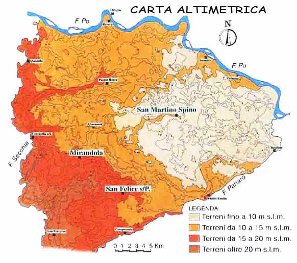CARTA ALTIMETRICA DI MIRANDOLA E VALLI